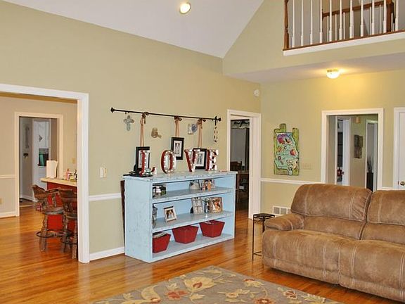 Beautiful Brookstone home features a rocking chair front porch, with stacked stone steps and porch. Fireside great room with vaulted ceilings, hardwood floors thru-out main floor, bright kitchen with breakfast bar and breakfast area. Doors from kitchen lead to the over-sized deck which overlooks private, level fenced backyard. Huge Master on main with his and her closets and new bathroom tile. Front and rear steps lead to three large secondary bedrooms. Laundry room with built in cabinets. New carpet and neutral paint. Cul de Sac lot - walk to the pool, park and tennis