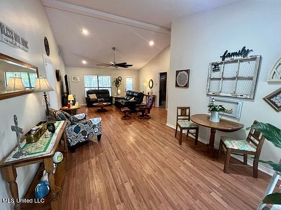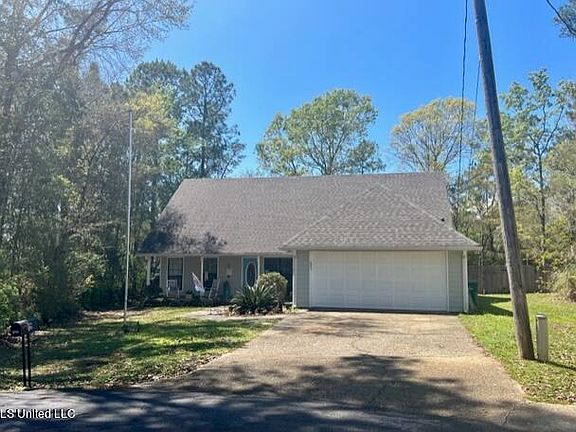 Charming cul-de-sac home on the East side of Diamondhead! Featuring 3 bedrooms and 2 full bathrooms, this cozy home offers a spacious split floorplan. The entry has plenty of room to greet yor guests and is open to the living room which has a vaulted ceiling. The eat in kitchen has stainless steel appliances and butcher block countertops. The roomy primary bedroom suite if off the kitchen and in close proximity to the laundry room. You'll love the covered back deck and large fenced yard. While on the deck you will have access to the attached craft room/workshop which offers extra space & has a window a/c unit. Conveniently located near amenities and recreational activities, this property is perfect for those seeking comfort and convenience in Diamondhead.