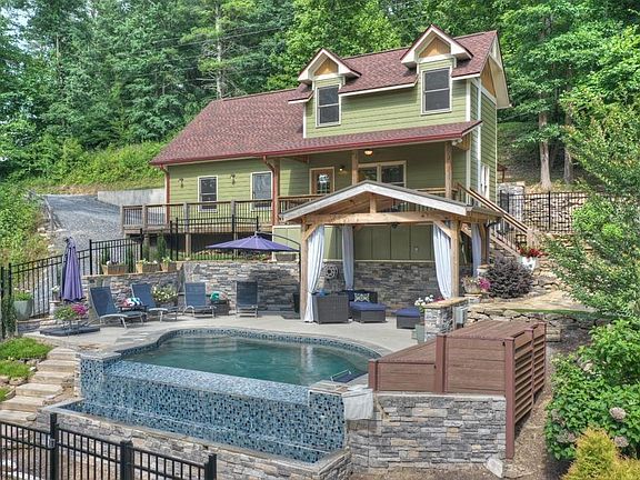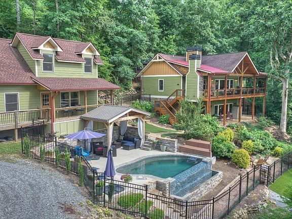 This one of a kind property is a rare find with all of the bells and whistles. Offering a main house & guest house on 1.64 acres with 200+ feet of frontage on Hemptown Creek, you will not find another like this. Step inside the main house to the open floor plan which features cathedral ceilings, wall of glass windows, stone fireplace, kitchen island, black stainless-steel appliances, granite countertops, & double vanities & laundry in the master bath. Walk downstairs to find 2 BR/1 BA, den/rec area with shuffle board table & custom built wet bar, & a second laundry/utility closet. The guest house offers 2 car garage, upstairs office/bedroom, full bath with walk-in shower, work shop, rec room, & infinity pool. Nothing was left to the imagination including an exterior fireplace on the large party porch, outdoor stone paths throughout, turf areas, firepit area, extensive landscaping, 2 driveways, & steps leading down to the year-round flowing water.