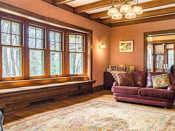 Historic Paul-Publow home set on park-like 1.8 acre lot. Arts & Crafts bungalow & stone carriage house w hay loft designed for Charles & Katherine Paul circa 1911. Original architectural & landscape drawings as well as vintage photos & narrative history will pass to new owners. Staggering amount of architectural detail: boxed beam ceilings; plate railings; mahogany & oak trimmings; patterned brick accents & brick archway; enormous bay window w seat; walk-thru china pantry, cabinets w leaded glass, etc. Elegant original 1st flr bath. Gorgeous new kitchen w granite counters, built-in eating area & walk-in food pantry opens to family rm w slate flrs. Large first floor bdrm adjoins bath & opens to porch. 2nd flr bdrm suite. Finish massive 2nd flr raw storage area to add hundreds of sqft.