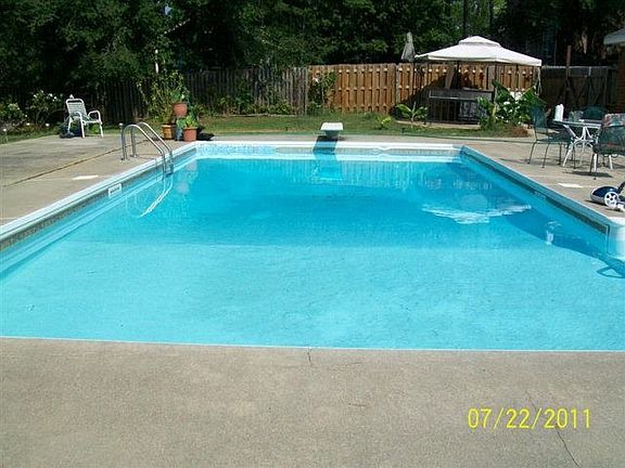 Brick Ranch with in-ground swimming pool!Perfect for the HOT Spring and Summer. Wood laminate flooring throughout, kitchen with tile backsplash, spray foam insulation. Great schools!