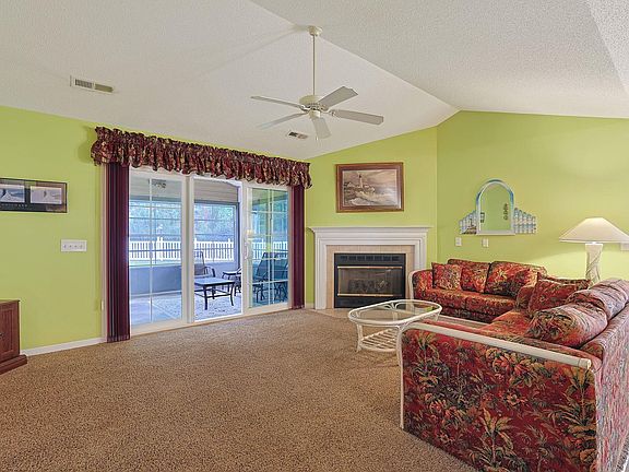 Introducing this graceful 3 bedroom 2 bath home located in the popular Hillsborough community. As you enter this captivating home you take notice of the elegance of this bright open floor plan that features vaulted ceilings, carpet & tile flooring, plantation blinds, double pane insulated windows,  a graceful formal dining area with chair railing, a comfortable living room, a family room with a cozy gas log fire place that showcases a new sliding glass door that opens up to the enchanting 4 seasons room. The modern kitchen is equipped with a range, built-in microwave, dishwasher, French door refrigerator with freezer drawer, ample counter & cabinet spaces, tile back splash, a breakfast bar, a computer niche, a sunlit breakfast nook, along with an ideal kitchen pantry. The comfortable primary bedroom offers a vaulted ceiling with a fan, private access to the primary bath hosting vanity with single sink, a comfort station with a pony wall, spacious walk-in, and a deluxe step-in shower. This delightful home is completed with two additional bedrooms, a full guest bath, a laundry room, a 6 zone irrigation system, back patio, a fenced back yard, and a two car attached garage with a garage screen. Hillsborough is a charming community with desirable amenities that feature an outdoor pool, pickleball/basketball court, playground, grilling area, cornhole toss, bocce ball pit, along with an amenity center. This home affords you easy access to the beach and golfing along with all of the other activities and happenings in Myrtle Beach & Conway including fun eateries, award winning off-Broadway shows, public fishing piers, Conway’s historic riverwalk, and intriguing shopping adventures along theGrand Strand. Conveniently located to your everyday needs, including grocery stores, banks, post offices, medical centers, doctors’ offices, and pharmacies. Check out our state of the art 3-D VirtualTour.
