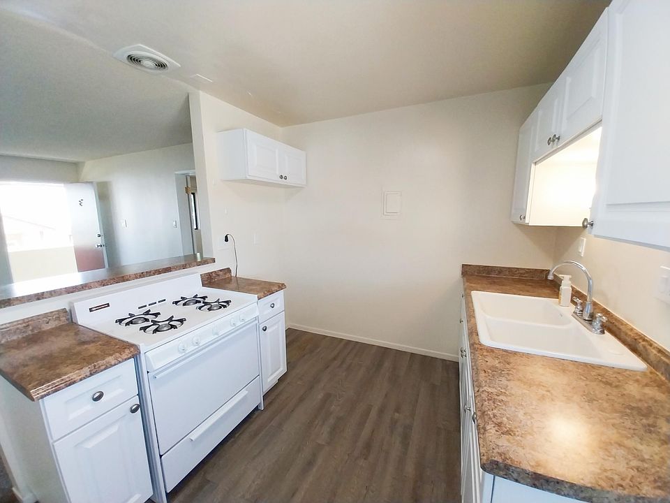 Nice pool/good size closet/Nice & clean Carpet/AC/shower & tub/ kitchen with gas range and cabinets/ living room/laundry facilities in 16-unit complex.