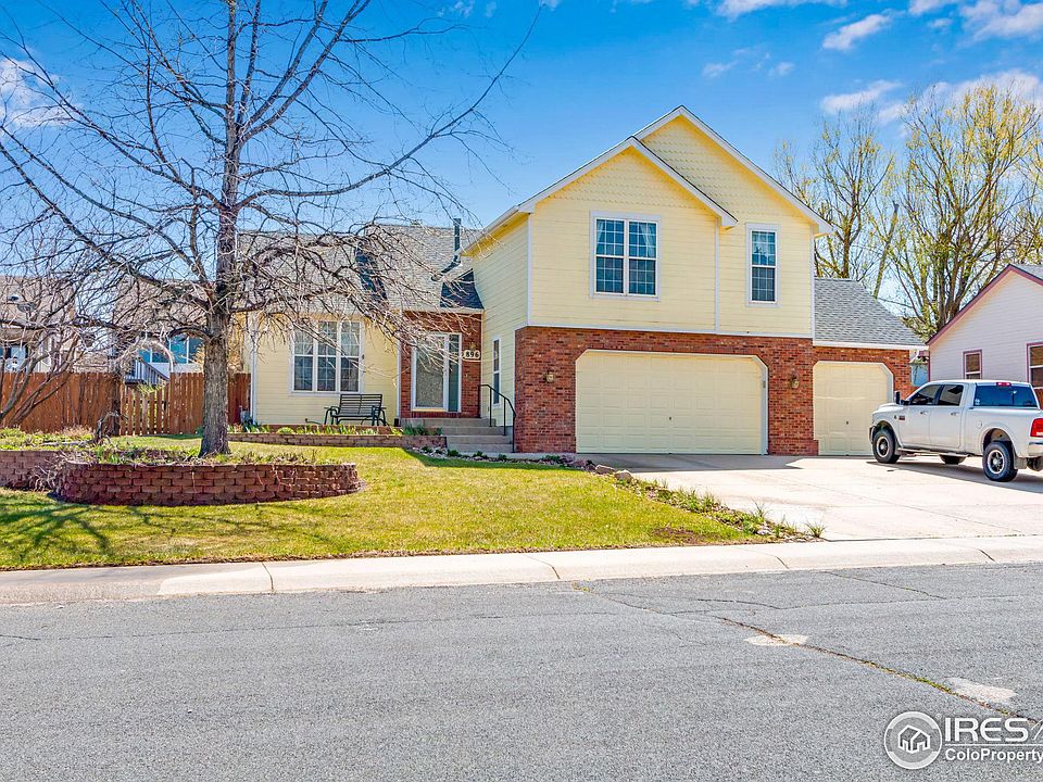 Great 2 story home in the heart of Johnstown. Amazing location near downtown and several parks and ball fields. A couple doors away from the old high school which is being renovated and turned into the new middle school. Lots of beautiful landscaping and plenty of plants to enjoy in front and on the large back patio. Reap the bountiful harvest from your apple and plum tree or the grapes. The home has lots of room and a 3 car garage. Plenty of parking for RV or boats with no HOA or Metro district. You enter the home into the cozy carpeted living room. Just beyond you will find the dining and kitchen with hardwood flooring. Newer dishwasher, microwave and oven/range as well as the cast iron sink all included. The family room is next with a nice fireplace and a 1/2 bath and a couple closets for plenty of storage. Upstairs you will find the primary suite with a 5 piece bath and walk in closet. Two more bedrooms, a full bath and conveniently located near the bedrooms is the laundry room. For your future expansion or just more storage is a unfinished basement with a storage area.