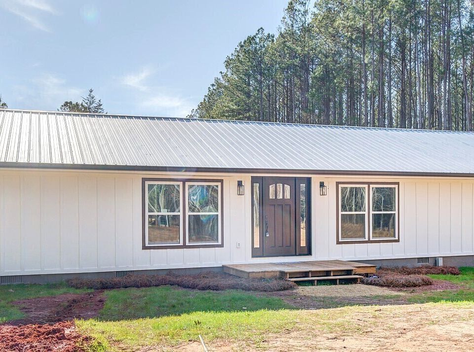 Welcome Home to this spacious all new home on 6.95 private acres. Home features huge great room with vaulted ceiuling and ship lap accent wall. There is a separate area for dining room table and also breakfast table area in the kitchen area, along with cabinets galore, pantry, and butcher block island. The 3 bedrooms with master displaying plenty of room, large walk in closet, and amazing double vanity bath with soaking tub and walk in tile shower. 2 additional bedrooms have large closets with ample storage. The hall bath has tile tub/shower and double vanity with marbe top. Everything is new, including roof, framing, drywall, siding, fixtures, plumbing, well, septic, electrical, HVAC, fixtures and more. Convenient location. Plenty of acreage for barn, animals, recreation.