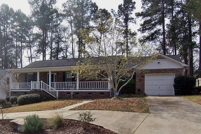 All brick home features 3 Bedrooms, 2 Full Baths, and in-ground POOL! Rocking chair front porch and circular driveway with a one-car garage. Split bedroom plan with hardwood flooring in the kitchen, dining room, great room, and all three bedrooms! Lovely kitchen is open and bright with plenty of cabinets. Owner's suite with oversized closet, garden tub, and separate shower. Large rear deck overlooks the 18x36 pool, patio, and lush landscaping. Great location in the heart of Evans! Vacation in your own backyard!