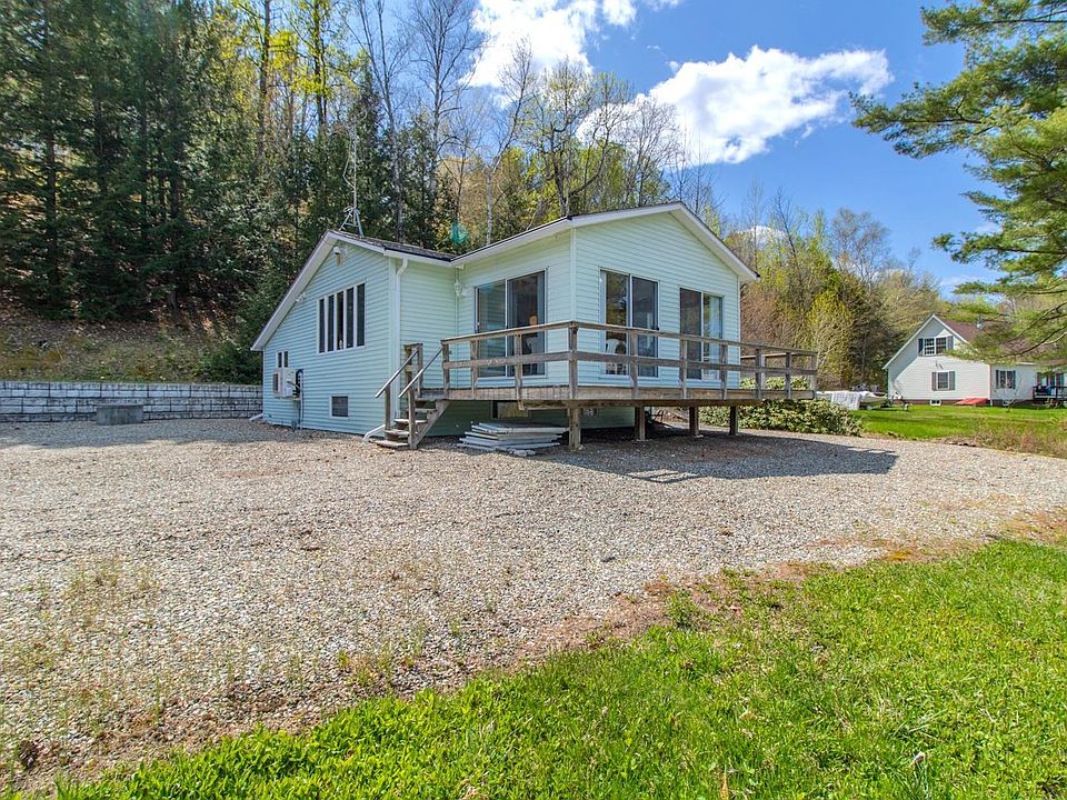 Come take a look at this year-round lakeside getaway on Crystal Lake in Barton, VT! Built in 1979, this multi-level home offers 1,400 square feet of finished living space inside, and the .42-acre lot includes 100 feet of frontage on glistening Crystal Lake. With an open plan kitchen, dining and living room, the main level is perfectly designed for gatherings, which will undoubtedly overflow to the 4-season sunroom and onto the wrap-around deck, where you’ll enjoy unobstructed views of the lake. On the center level you’ll find a bedroom/office and the full bath with laundry. Two bedrooms and a clean and spacious concrete crawl space make up the lower level. For convenience and ease of use, this home is also equipped with a central vac. These systems offer powerful suction, longevity and durability, versatility and reach, and improved indoor air quality. A rare find these days! An attractive, recently updated, stone retaining wall was added along the back of the property, and other more modern features include security/alarm system, smoke protection, heat pump, and wi-fi controlled thermostats. There’s an 8x12’ shed for storage, a lawn mower, and dock included, for easy access to swim and fish, or to launch your boat. Make sure to check out the 3D tour for the full experience! The home is being sold furnished.
