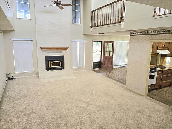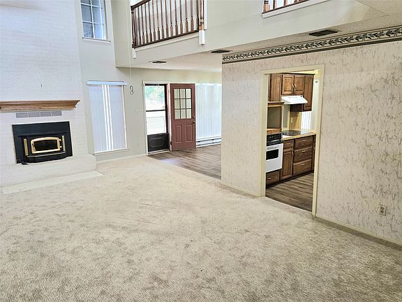 When you enter the home you'll be welcomed by original brick flooring filled with character, while you step down to a massive great room to enjoy the open concept with a large fireplace at the center of the room.