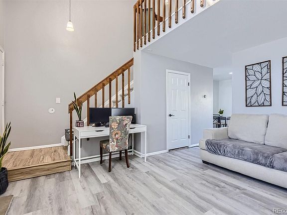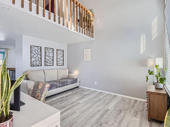 Welcome Home to this rare find in Highlands Ranch! Upon entering you will find vaulted ceilings with an immense amount of natural light from the skylights above. Notice the brand-new luxury vinyl plank flooring in the spacious living room, complete with a wood-burning fireplace and newer windows and window coverings. The kitchen boasts stainless steel appliances, french doors leading to a freshly stained deck, and a large pantry. Check out the closet under the stairs for great storage! Brand new tankless water heater and furnace (Dec 2023)! The bedroom and full bathroom are privately tucked upstairs, complete with a walk-in closet and a darling loft for an office or workout space. Enjoy the quiet entrance with beautiful oversized mature trees; conveniently located near C-470, Westridge Recreation Center, and an abundance of shops and restaurants. Come see this gem for yourself!