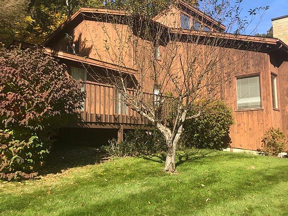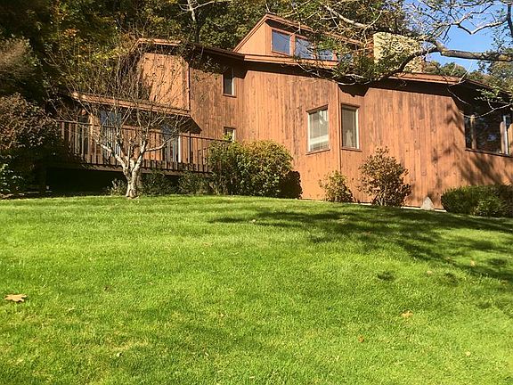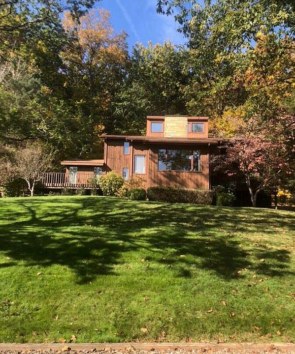 Welcome home to this awesome contemporary home, nestled on a wooded lot. Featuring a large great room with cathedral ceilings, and a sensational two sided stone fireplace adjacent to the living room or study. The large dining room overlooks the covered front deck w/ magnificent views. All four bedrooms are sizeable with fantastic closet space! First Floor laundry and a second open deck off from the master suite. Beautiful area with great views. this home will make for a wonderful place to entertain and call your own!