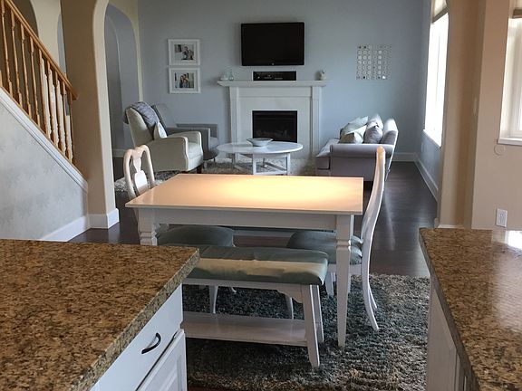 Big fenced yard, shed, playhouse with slide, kids park across the street, granite counter tops, fire pit, patio, fireplace, 3 car garage, finished landscaping