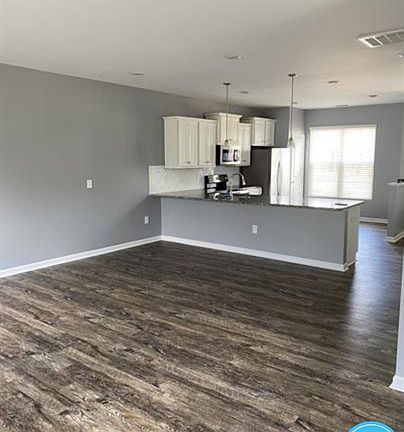 Luxurious but decently priced END UNIT townhome! Vinyl flooring throughout 2nd floor, stainless steel appliances and a large kitchen island great for entertaining! W/D included at no charge. Small dogs ONLY. Credit score must be above 680 per owner. Thorton Creek TH; 3 bedrooms/2.5 baths; 1407 sq ft; HOA is Charleston Management;
