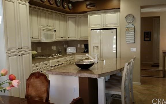 Light, Bright, Sunny, this former model home is stunning. Located in the base of the Cleveland National Forest, Trilogy at Glen Ivy is an active adult 55+ gated community. As a model home this condo was upgraded with the finest travertine floors, granite counters and backsplash in the kitchen. The finest off-white cabinetry throughout, with a built in entertainment center. Over sized master suite has coffered ceilings, large windows, molding. Stunning master bath tile work, mirrored double sink vanity, over sized shower, walk in closet w/built ins. Decorator colors lend the perfect touches, including custom drapes and window shades. Large backyard covered patio faces north. 9 1/2` ceilings, gas fireplace. Honeywell alarm system. This is a Ted Robinson designed 18 hole golf course community. Amenities include gym, 2 pools,indoor and outdoor(salt water) spa,tennis,bocce,billards,BBQ,banquet room, library, many club and planned activities HOA Fees include all exterior maintenance of structure and landscaping. Immaculate, turn key.