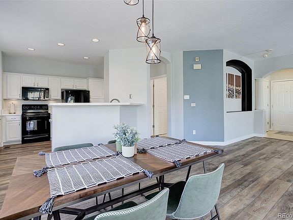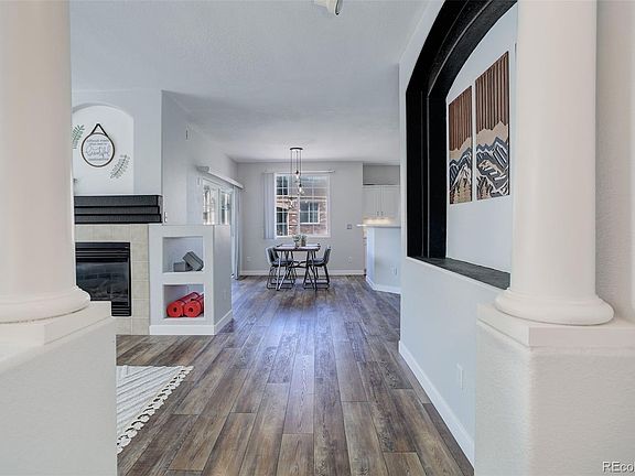 You found it! A must see completely remodeled beauty with a fantastic price, that is turn key and move in ready. This home has newer everything including high end Luxury Vinyl flooring and upgraded base boards throughout, custom paint and lighting throughout, upgraded kitchen counter tops and cabinets with beautiful door pulls, upgraded appliances, plenty of cabinet and counter space including a beautiful bar area, two full, bright and updated, beautifully apportioned bathrooms, large bedrooms that are flooded with light and offer plenty of space with big closets, a primary bedroom retreat with attached bath that offers serenity in an oasis at home. The large family room includes a focal point fireplace and the family, dining, patio and kitchen areas flow together perfectly. All of this with the privacy of an end/corner unit with direct access to the over sized single car garage and bonus storage area located directly below the home. The covered porch is an in town escape where you can find solace and relaxation with no direct neighbors and immediate access to grass and walkways. All of this in a hard to find, sought after, main level corner unit! Location Location Location as this property offers fantastic access to commerce, shopping, entertainment, Downtown, trails and recreation, as well as the entire north area, walking distance to RTD/park-n-ride. This is a fantastic property at this price point. A must see!