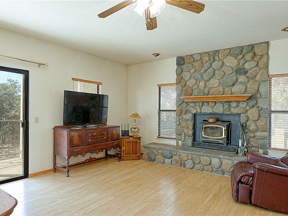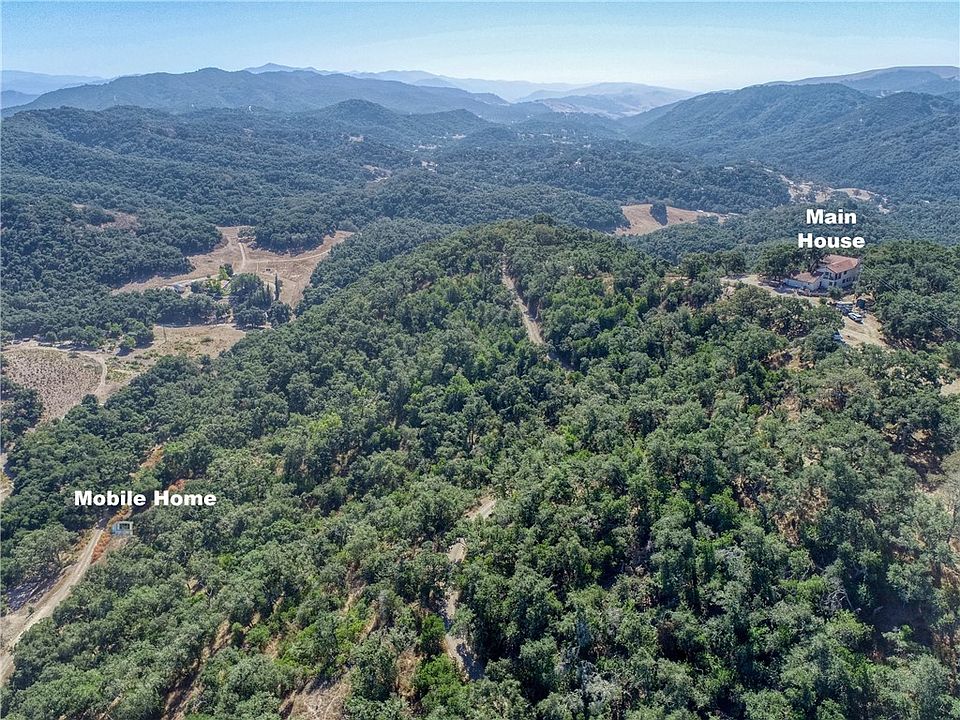 Wonderful 2 story 4 bedroom 4 baths primary home on 27 plus acres and a single wide mobile for guests, rental/storage so many options. Unparalleled views and majestic oaks frame this home and property. Family room has a classic river rock fireplace with insert. Master upstairs has a Franklin type stove with view and adjoining bath and separate 2 headed shower with 2 closets, one is a walk in. Separate toilet area. Two decks off of upstairs bedroom and deck off of downstairs living room and bedroom. The garage has a separate bath. Kitchen has a breakfast bar. All electric home with propane at mobile. The mobile is 2 bedrooms and 1 bath and is not part of the total square footage.