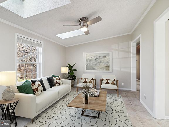 **Offers due Monday 2/26 at 1pm** Charming 3-bed, 3-bath single family home with over 2,000 sq ft, 1-car garage and backing to wooded area. Enter to a bright and airy main living area, featuring a vaulted ceiling, skylights and open layout. The spacious Chef's kitchen boasts white cabinets, granite countertops, stainless steel appliances, and adjacent dining area with access to the sunny outdoor deck. Retreat to the main level owner's suite, showcasing real maple hardwood floors, walk-in closet, and a spa-like en-suite bath with tiled stand-up shower, providing the perfect single-level living experience. Two additional bedrooms and a full guest bath with a tub and bluetooth speakers complete the main level. The lower level is ideally-situated for entertaining long-term guests, in-laws, or hosting a movie night in the large rec room offering walk-out access to the rear yard. Fully-equipped with a wet bar, laundry room, full bath, and den/office, this versatile lower level space can be easily adapted to your needs. Step out through the slider door to the rear patio, offering ample yard space that opens to a wooded lot and stream. Enjoy a morning coffee on the large front porch or relax on the peaceful side deck with tree-lined views. The attached garage with epoxy flooring and driveway provides off-street parking for 2 cars, plus plenty of street parking available for visitors. Recent updates include new paint (2024), dishwasher (2023), microwave (2024), garbage disposal (2023), water heater (2017) and HVAC ( 2019). Just minutes to Harris Teeter, Starbucks, Guilford Park sports courts and tot lot, Savage Mill, Maple Lawn, and downtown Columbia. A commuter's dream location with easy access to 95, 32, multiple Amtrak train stations, and only minutes to Ft Meade, NSA, Baltimore, Annapolis or DC.  Don’t miss this rare find!