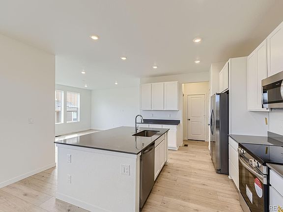 Stunning home is next to open area and showcases high ceilings upon entry, exquisite finishes throughout, entertainer’s kitchen with open concept design to great room and a spacious yard. Tons of windows, bringing in Colorado’s sunshine year-round! All bedrooms, loft, and massive laundry conveniently located on upper level with well thought out floor plan. Home features 2 car garage, full unfinished basement for future expansion, and much more! This home won’t last long, come tour today! Welcome Home! Photos and walkthrough tour are a model only and subject to change.
