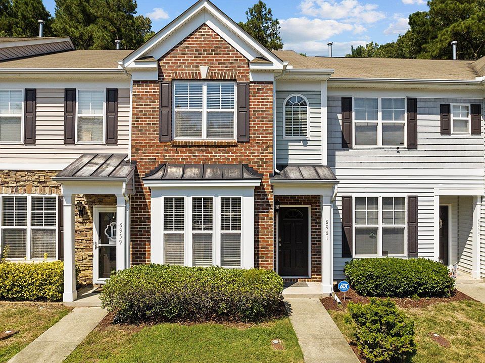 This home is located in an ideal location and ready for a new owner. You can move right in. Fresh wall paint and new carpet/pad ! Family room is tucked away in the rear for the utmost privacy and offers a gas log FP. Kitchen features built-in microwave, 42 inch cabinets, separate pantry and overlooks the FR. Host dinner parties this Fall in your dining room with new chandelier and wainscoting. Primary bedroom with vaulted ceiling and large bath plus great closet space. Guest bedroom with ensuite. Rear patio backs to wooded area and has outdoor storage closet. Easy access to 540, 40, Brier Creek and so much more.