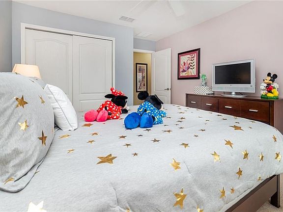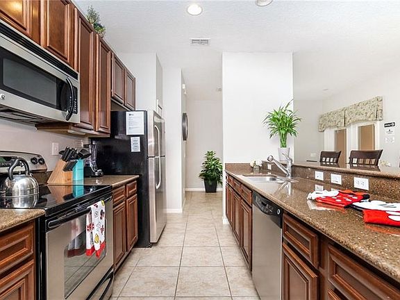 This luxury townhome is located in one of the most desirable vacation resorts, Paradise Palms. This beautifully done vacation home has a private patio with a screened-in enclosure and heated Splash Pool! Start earning income from day one with this furnished home. This home has tons of future bookings in place that can be transferred to the new owner.