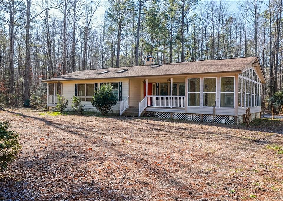 Welcome to your slice of heaven in New Kent, VA on 5 Acres of land! This property offers open living space, large bedrooms, 2 full bathrooms and multiple areas of outdoor living areas. Features include a fireplace, wood and tile flooring throughout, lots of natural light, a sunroom, an open kitchen and living area, and a very large, detached garage! Outside you will also find a large screened in gazebo and many areas to entertain around a large bon fire. Don't miss out on this opportunity to own a piece of land in a quiet area!