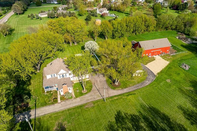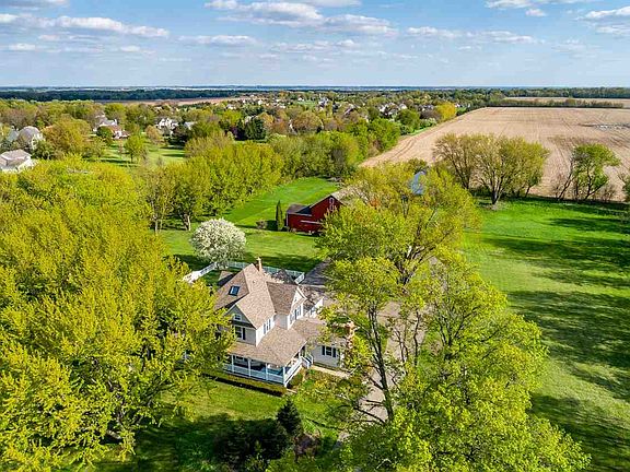 Are you ready to fall in love? Beautiful gem close to I-90, new Mercy Hospital & Rockford culture scene. Modern vintage farmhouse w/wrap around porch, circle drive on 5 ACs. Open flrpln feature original wdwrk, 2 staircases, 2 flr to ceil stone frplcs. Updtd chef's kit w/lg wlk-in pantry. FamRm w/new patio dr, southern exposure has flr to ceil wndws that look out on deck & fncd yd. Custom built-ins & French drs lead to the cozy library. Adjacent to the bright formal DinRm is the formal LivRm w/bay wndws. 3 bdrms on 2nd flr include master w/en suite bath & lg walk-in closet & expansive guest bath in hallway. 3rd flr suite is a dream w/vaulted ceils, fresh air skylights, walk-in closet & priv bath. Lg partially fin bsmt, attached 2.5 car gar & Kohler whole house generator. Property features barn w/33x27 fin RecRm, detached 3 car gar & corn crib. New roof, siding & well2014. Detached gar new wiring & new door. New wiring in barn RecRm. Zoned Ag.