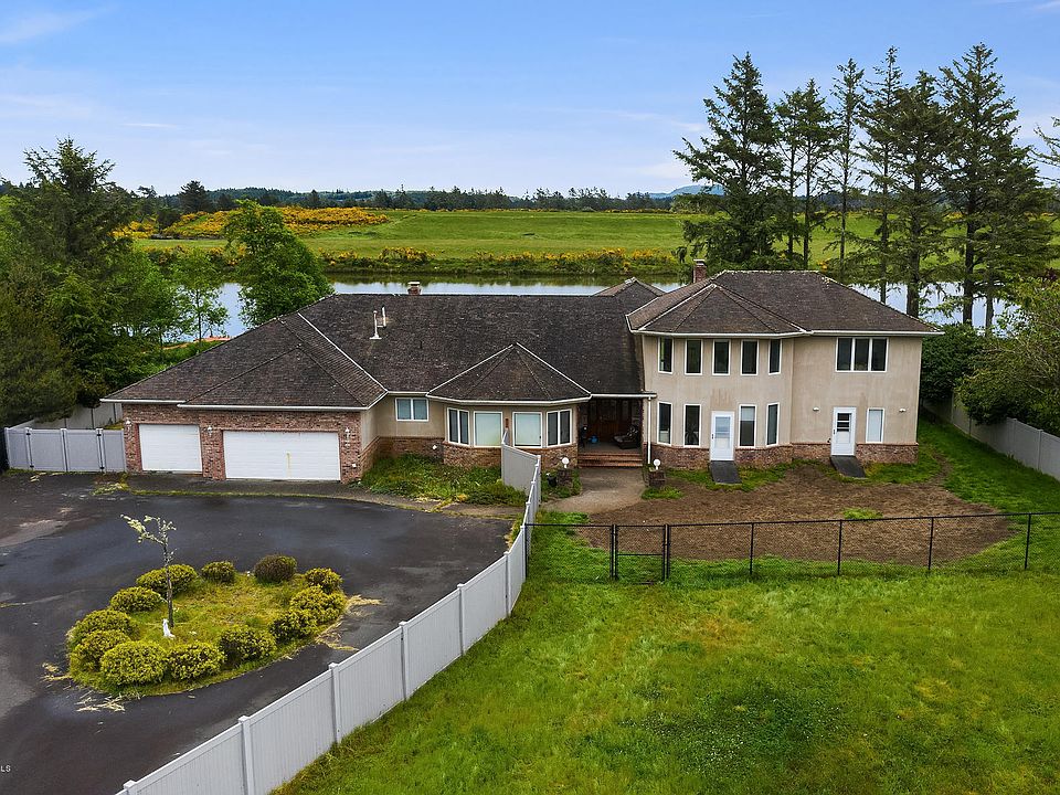 This spacious lake front home is situated on just under two acres, about 2.5 blocks to the ocean in the beautiful gated community of Surf Pines. Lake views & abundant wildlife entertain you every day. Access the beach via one of Ocean Drive's private paths. Enjoy the main floor master suite, picture windows, high ceilings, fenced yards, on a secluded cul-de-sac w/ a gated driveway. Great vacation/rental home possibilities: multiple entrances, space for many vehicles, a great gathering place! Please see the 3-D Matterport tour and the Aerial Video in the photos.