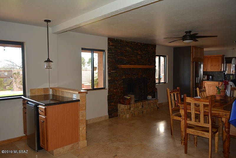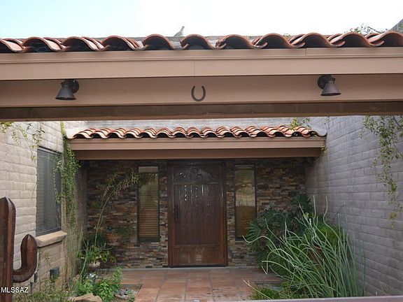 Gorgeous home nesteled in Bear Canyon Estates. This home is a 4 BR, 2.5 BA house with a 270 sq ft permitted additional workshop/mancave. There is plenty of room for parking with 2 carport spaces, an extended 2 car garage, and even room for parking your RV. Talk about curb appeal, this home has it with a large 6-8 car semi circle driveway, with well groomed landscape and a beautiful and welcoming front entry. The home is gorgeous inside with large tile, granite throughout the home, elegant neutral paint, barn doors & knotty alder doors and trim, a newly remodeled master ba throom, dual pane windows, a classy looking fireplace, and tons of well utilized space. This home is move in ready and absolute EYE CANDY! Dont miss this opportunity to live in desirable Northeast Tucson!