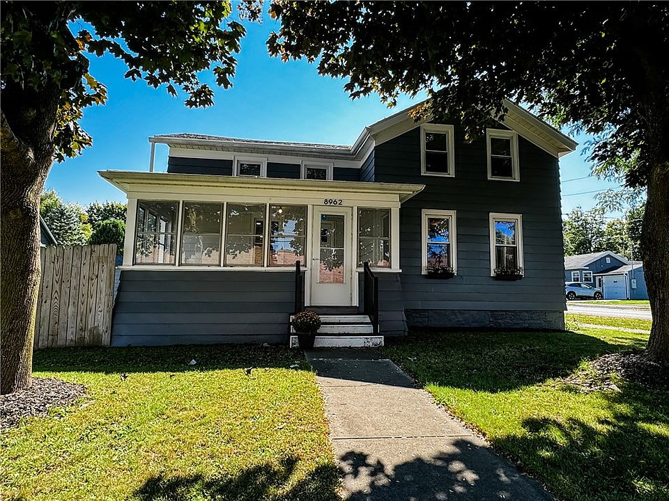 Located in the Village of Weedsport, this charming home is within walking distance to all amenities! This property boosts a spacious first floor with a large eat-in kitchen, large living room, a formal dining room that could be easily used for a third bedroom or home office and not one but two enclosed porches to enjoy for entertaining! The upstairs holds both bedrooms, two additional hallway closets and large full bath complete with a walk in shower and claw foot tub! The back porch overlooks a fully fenced in yard that is screaming for a new deck and firepit to enjoy throughout the summer and cooler autumn evenings! Looking for additional storage? There's a one car garage with electrical service and heating that could be utilized as storage, workshop or even a home gym! Do not miss your opportunity to see this charming property in the heart of Weedsport!