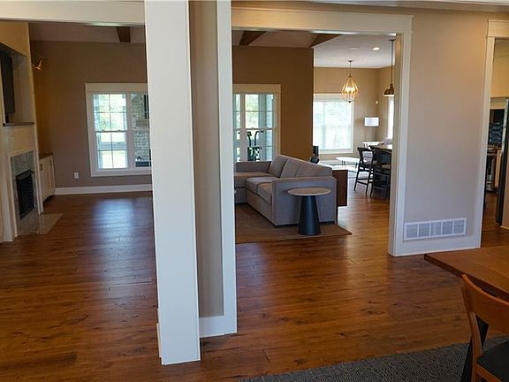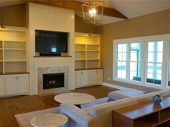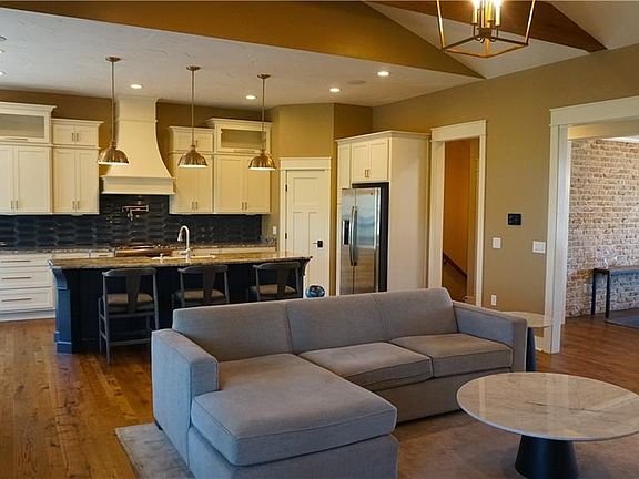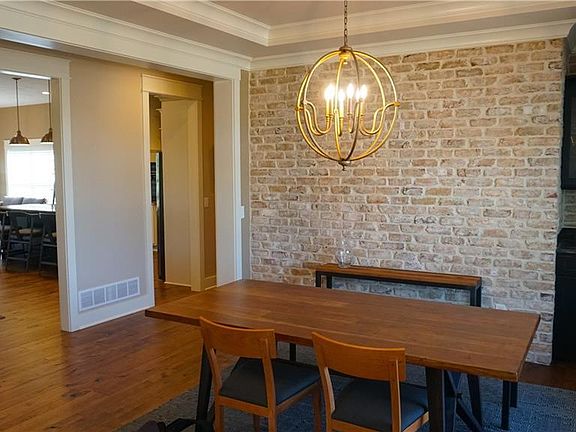 This 2019 Parade of Homes award winner built by Aurora Homes exudes Charleston charm with its handmade brick and stone exterior. Upon entry youll notice the open floor plan and your eyes will be drawn to the handmade brick accent wall in dining area. Your ears will enjoy the whole house sound system Great room features a vaulted ceiling accented by solid rough sawn wood beams & gas fireplace with unique tile surround flanked by built ins surrounded by shiplap, opening to the gourmet kitchen with accented painted center island, custom oval glass tiled backsplash and creme colored cabinetry with soft close doors and drawers topped with upgraded granite counters. A sitting area adjacent to the kitchen leads to enclosed patio overlooking backyard with 12 foot ceiling and gas log fireplace with mounted tv (which remains) accented by string lighting. Relax and unwind in the owners suite with gilded gold trayed ceiling and spa like master bath with glass shower separate his/her vanities and walkin closet with built in dresser with watch display drawer. Two additional spacious bedrooms and another full bath with herringbone tiled floor are located at the opposite side of the home. Half bath with gold tile wall and matching gold highlighted accent floorboard and first floor laundry are also featured! 3 car side entry garage w/whisper quiet openers. Full basement ready to be finished with full bath roughed in! Cant build this one today at this price with these features!