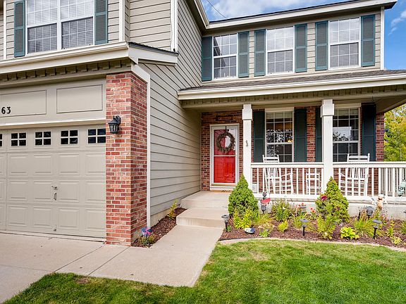 Beautifully updated home on large lot enjoys many community amenities. Welcoming front porch is framed by lovely landscaping. Step onto new wood laminate flooring throughout main level. Light updated kitchen has slab granite counters & island, new backsplash, breakfast nook overlooking backyard, & handy computer desk. Family room w/new paint & vaulted ceiling features gas fireplace w/classic brick surround & mantle, built-in shelving, and a trio of double-tiered windows. 4th BR w/ 3/4 bath on main floor is perfect for guest area or older family. Finished basement w/new carpet, family room, 5th BR & 1/2 bath. Roof is less than 5 years old, water heater is 1 yr old. Backyard surrounded by greenery has patio and plenty of room for kids, dogs, garden & fun. Highlands Ranch has 4 rec centers with year-round pools, tennis, & fitness, 21 playgrounds, 25 parks, 70 miles of trails & acres of open space. Minutes to highways. Steps to trails, walk to elementary & playground, walk/bike to MS & HS.