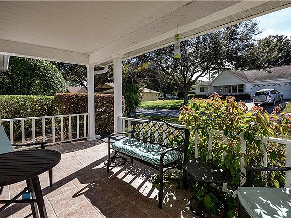 PARK-LIKE CONSERVATION VIEWS OUT BACK and NO BACK NEIGHBOR! This spacious, much desired expanded end-unit Columbia/Winthrop model home is located in the highly sought after gated 55+ golf community of On Top of the World. This home offers 2 bedrooms, 2 Baths, large 2-car Garage, Flex Room, Sunroom, newer HVAC (2019), newer rood (2014), exterior paint (2016), vaulted ceiling in Living Room, Solar tubes for additional light in Living Room, Great Room and Guest Bath, private patio, inside Laundry, pull-down stairs to access attic storage, utility sink, and much more! Lawn care, gym, exercise classes, 24-hour guarded gate, exterior painting, and more are included in your monthly HOA fee. A large Front Porch under roof welcomes you to the residence. Step inside the expansive combination Living/Dining Room under vaulted ceiling. A Flex Room is located just off the right side of the Living Room at the front right corner of the home. Toward the back of the home is the Kitchen with neutral cabinets, stainless appliances, pantry, and eat-at prep-Island that overlooks the Great Room (some use this space as a Dining Room or Family Room). Multi-lite French doors off the Great Room open to the naturally bright Sunroom at the back of the home. Enjoy nice views of the deep conservation space out back. The Master Bedroom Suite is located at the back right corner of the home and it features a large walk-in closet with multi-level rods/shelves to maximize storage, Master Bath with L-shaped vanity, and step-in shower. The split bedroom floor plan has a large 2nd Bedroom and Guest Bath located on the left side of the home. The 2nd bedroom features an expansive double closet to provide lots of storage.