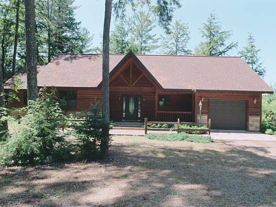 Enjoy serenity in the private area on the Minocqua chain of Lakes. All quality materials chosen to construct this lovely home on 1,000's of acres of water. Swimming beach, nicely wooded lot, spacious interior with all the necessary interior Northwoods components of plank & carpet floors, fireplaces, water views, master bath for master bedroom, and a full unfinished basement with walk out door and large windows permitting the new owner to use the basement as desired. Note: Some acreage lies on the other side of road.