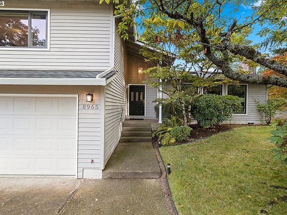 OPEN HOUSE 11:00 AM to 1:00 PM Saturday 10/11Modern NW Contemporary in perfect location! Fabulous Torrey View modern tri-level home with vaulted ceiling loads of windows/skylights on private cul-de-sac .25 acre lot. Updates include: primary & hall baths, kitchen including appliances, added beautiful white oak hardwoods, new roof 2023 w/"hurricane" straps, gas fireplace, gas lighter on wood burning fireplace, newer windows, newer furnace 2013 and more. High vaulted ceiling w/skylights in living room, stunning brick fireplace & mantle, large windows. Family room with gas fireplace opens up to nook/kitchen, laundry w/washer/dryer, built-in cabinet/countertop perfect for folding/sorting and 1/2 guest bath bath. Larger bedrooms, one "European suite" bedroom w/sink/vanity. Outdoor oasis with 2 level entertainers deck, hot tub, sport court/patio, level grass yard and beautiful landscaped which includes mature fruit trees. Outdoor garden storage shed. Difficult to find "real" two car garage, extra deep. Quiet but fun neighborhood! Portland address with unincorporated WA Co taxes.