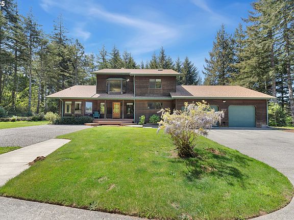 Custom Country Home Near Bandon DunesJust minutes from Bandon Dunes Golf Resort, this custom-built home on 2+ acres offers privacy, comfort, and modern convenience in a beautiful rural setting. Enjoy vaulted ceilings and a cozy wood stove in the open great room, with the main-floor primary suite opening to a private deck and hot tub—your own retreat. Recent updates include new carpet (2021), a new roof (2022), and dual heat pump systems (2018/2020) for year-round comfort.The finished 2-car garage includes extra workspace, while a private well and septic, and RV hook-ups offer some self-sufficiency. Central vacuum and outdoor sheds add to the home’s thoughtful features.Whether you’re seeking a peaceful full-time residence or a golf getaway, this home offers the best of both worlds—serene country living just minutes from the coast.
