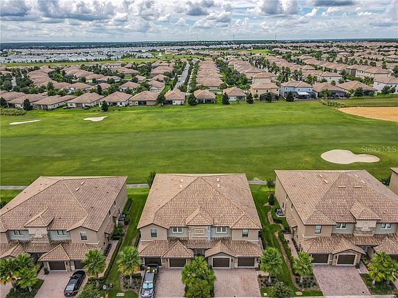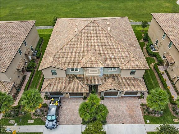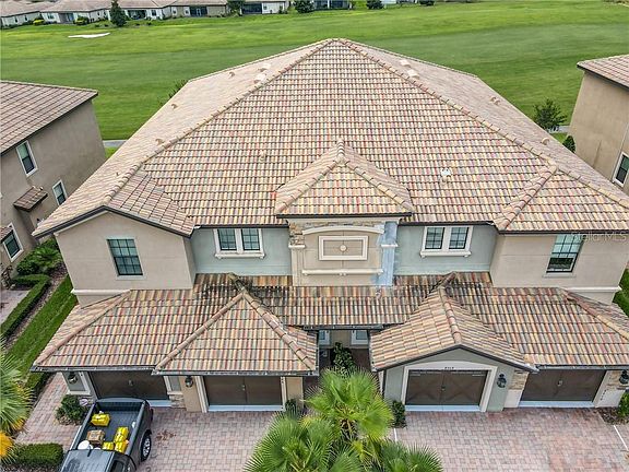 Outstanding views of the golf course. Live like you are on vacation year round in this terrific top floor condo in Champions Club of Champions Gate. Perfect as an investment property or snowbird getaway. Beautiful kitchen adorned with espresso colored cabinets and stainless steel appliances. Matching pendant lights in the kitchen and dining room light fixture included. Ample sized master and guest bedrooms and bathrooms with open spacious layout and walk-in closets. Den can be used as an office or third bedroom. Ceiling fans in every room! Relax on the screened patio with your morning cup of coffee and watch the hot air balloons fly over. Great set up for a secondary outdoor living room area with cable jack and electricity available to install a TV. One car attached garage and brick paver parking pad. Enjoy everything this community has to offer including man guard gated access, community pool, lazy river, splash pad, fitness center, yoga room, movie theater, tennis courts and golf! Easy access to all major roadways, the Disney Theme Parks, world class dining, entertainment and shopping!