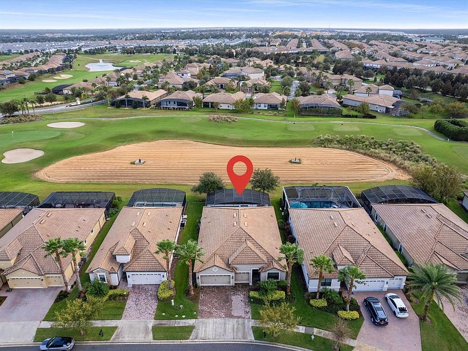This wonderful 4 bed 3 bath, property is located in the privately gated, residential golf community in Champions Gate, across the street from the amazing Plaza Country Club. With its great amenities including a huge pool, bar, restaurant, pickle ball and gym providing a great selection of activities for all that live here. This property is situated on the 14th hole of the golf course with far reaching views. From the moment you walk through the front door you will feel you have come home in this well maintained, light and bright property. The open floor plan provides easy living from the spacious kitchen diner, with its stainless steel appliances and granite work surfaces & upgraded tile floor, & a seated island & a large breakfast bar, through to two sitting areas, one for relaxing and the other for the family TV area. The master suite has golf course views out over the pool and a large bathroom, with a double vanity and shower and tub. There are three more comfortable bedrooms, one with its own ensuite and the other two sharing a double vanity bathroom with shower and tub. The spacious lanai overlooks the large custom pool, hot tub & deck which is surrounded by golf views. There is space for two cars & a golf cart in the garage. The property comes with Sonos speaker system, Smart home for alarm and lighting etc. Owners can also access the larger Oasis Club House with its lazy river, cinema, restaurant, kiddies water area and resort style pool with cabanas and pool side bar. *GOLF AND TENNIS INCLUDED IN HOA*, which also covers the lawn maintenance. The Champions Gate area has a plaza of great restaurants and shops & just 11 miles to Disney. This property is located on the residential side of the community so not zoned for short term rentals.
