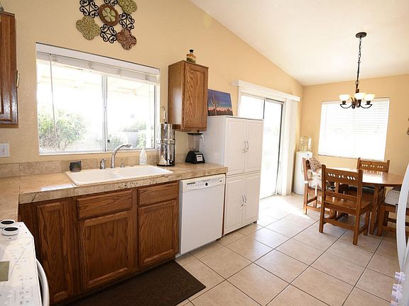 Beautifully maintained home with tons of upgrades and improvements. Features a brand new roof (2016), new exterior paint (2016), interior designer paint throughout, travertine tile countertops (kitchen & bathrooms), jacuzzi tub with dual shower heads in owner's bathroom, built-in organizational shelves in the owner's closet, ceiling fans in all bedrooms, surround sound wiring, convection microwave, water softener, Whirlpool Polara refrigerated range, auto drip system in yard, and dimmer light switches throughout the house. Take a short stroll to the neighborhood park for playtime in the Arizona sunshine. This neighborhood is conveniently located near Davis-Monthan Air Force Base, Pima Community College, and Fantasy Island bike trails. You won't want to miss this east side home!