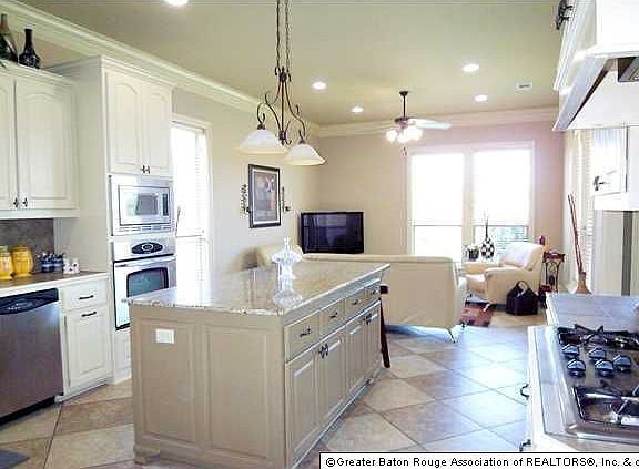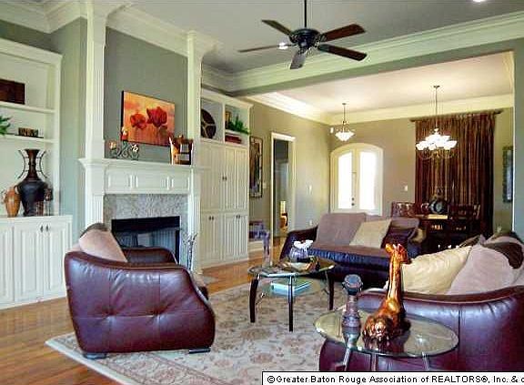 You will be proud to call 8966 Fox Gate Drive your new home! Located in convenient Woodridge subdivision, near the new Woman's Hospital, it has easy access to interstate, shopping and dining. When you enter the home, you will notice all the extra amenities,from the gleaming OLD PINE WOOD floors to the HIGH CEILINGS with Triple CROWN MOULDING, 20" porcelain tile to the fabulous kitchen which features SLAB GRANITE on the spacious island. The appliances include a 5 burner GAS cooktop and are STAINLESS steel. The large KEEPING ROOM is perfect for family gatherings. This home was on the Builders PARADE of homes, so is loaded with extras. You'll enjoy the mud room off of the laundry room, and the COMPUTER NOOK off the kitchen area. For privacy, the bedroom floor plan cannot be beat. The PRIVATE master bedroom has it's own wing. Bedrooms 2 and 3 are connected by a private bath, and bedroom number 4 is situated off the kitchen area near the garage. There is a 3rd bath in that wing. The large back Porch is perfect for morning coffee or afternoon cook outs. The Master Bath features HIS And HER VANITIES, as well as a corner WHIRLPOOL and separate shower. The home has wonderful curb appeal and is professionally landscaped, there is even sculptured edging on the flower beds. The HUGE backyard is fully fenced with a wood privacy fence and there is the perfect spot for a garden behind the fencing, with a sprinkler system, for ease of maintenance. The seller is offering an OLD REPUBLIC HOME WARRANTY!