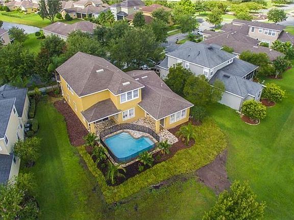 Connerton Village, POOL BUILD NOW COMPLETE! Take the video tour! Gorgeous, Stately pool home that has been fully updated. 4 Bedroom, 3 Bath, 3 Car Tandem Garage on a quiet lot overlooking pond. Includes Bonus room that could easily be used as a 5th Bedroom. Terrific floor plan with 10 ft ceilings and lots of natural light. Updates include fresh paint interior & exterior, new Frieze carpeting and fixtures throughout. Huge new chef's kitchen with granite counter tops, 42" cabinetry, stainless steel appliances and 2 separate bar areas adjacent to Dining room perfect for entertaining. French doors open to a private study. Hand scraped wood floors shine in the Formal dining room. Large Living room is open to eat in kitchen with bar. Come relax on 1 of 2 covered lanais. Brand new pool being built now! Ask for the plans! Impressive Master suite w/ tray ceilings and large walk-in closet. Master bath offers separate vanities, over-sized walk-in shower and garden tub. Community features include a clubhouse with fitness center, community pool/waterpark, playground, tennis/basketball/volleyball courts & an amphitheater! A must see! '