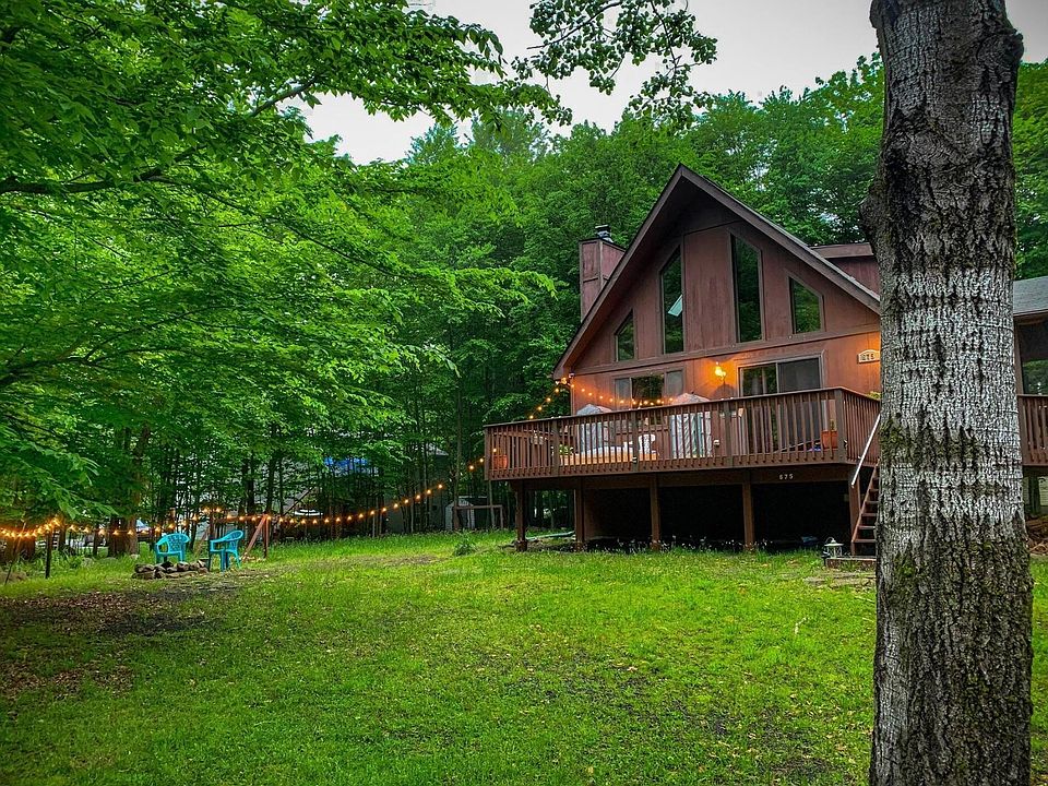 Four season swiss chalet! The house has 3 bedrooms, 3 bathrooms and a 4 person sauna! Open concept first floor features a wood burning fireplace and a modern kitchen. Up stairs is the master suite, with en suite bathroom featuring full tile, walk-in shower. Plus a screened in porch with a beautiful deck for a charcoal grill! The house comes completely furnished. There is also a billiards/ping pong table. Award winning private community with lakes, tennis & basketball courts, pool and beach. Less than 1.5 hours to NYC. 15-20 min from shops, restaurants, casino and resorts. Buses available outside community. Renter pays for utilities: water, cable and electric Year rental