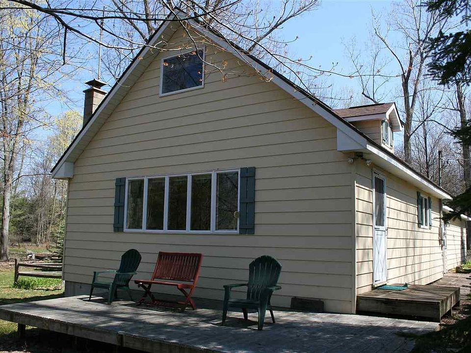 Torch Lake shared access. 2 bedroom, 1.5 bath chalet is the perfect way to enjoy Northern Michigan and the Chain of Lakes. 2 car attached garage for storage, plus 14x10 sun room/breezeway for extra living space. Deck and fire-pit. 150' of shared access to Torch Lake. Close to Alden, yet very private. Wood burning stove in living room. It is rare to find Torch Lake private shared access at this price.