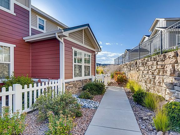 This beautiful townhome provides low maintenance living and is move-in ready! This end unit offers unbeatable views of Pikes Peak that will never be lost & backs to open space for privacy. As the former model unit, every update possible has been done: engineered hardwood floors, quartz countertops, 42 inch cabinets, upgraded appliances, gorgeous arabesque tile in kitchen, & glass mosaic insert in the bathrooms. Located in the coveted Wolf Ranch neighborhood, you are surrounded by walking trails, parks, Academy D20 schools (only a 7 minute walk to the local Elementary School). Built in 2015, this home was primarily used as a vacation home for the past 3.5 years, which means it has hardly been lived in--truly like new! Sit on the paved patio & sip your morning coffee with views of Pikes Peak. Take your pup to the community dog park or walk on the variety of trails in the neighborhood. Located in the heart of the Powers corridor, your commute will never be too long! Don't wait to build new when this former model is available for move-in now!
