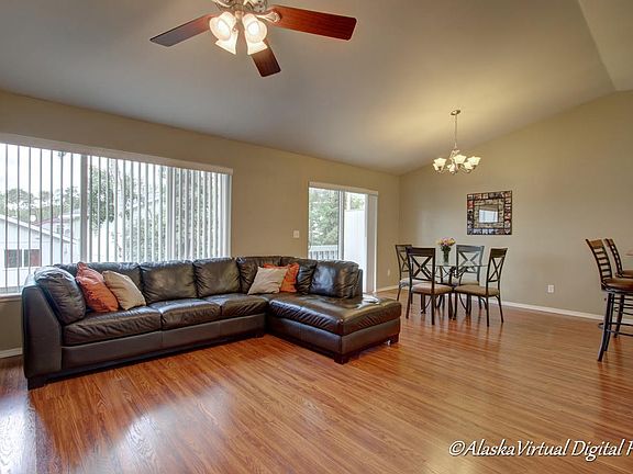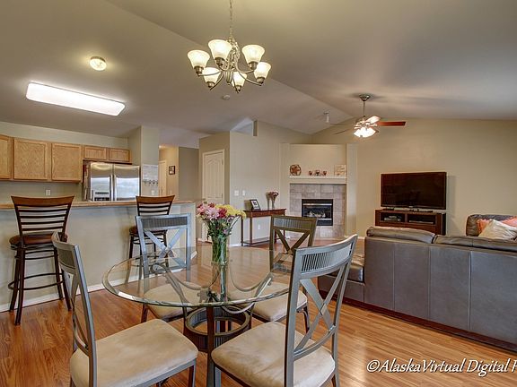 Located in one of Eagle River's most desired neighborhoods, this fresh and open condo offers amazing views inside and out! With newer wood laminate floors, stainless appliances, updated kitchen with counters and backsplash, fenced in backyard, balcony and mountain views! This place is a must see!