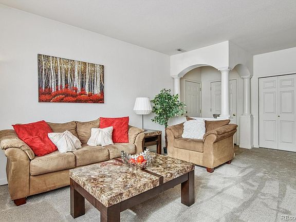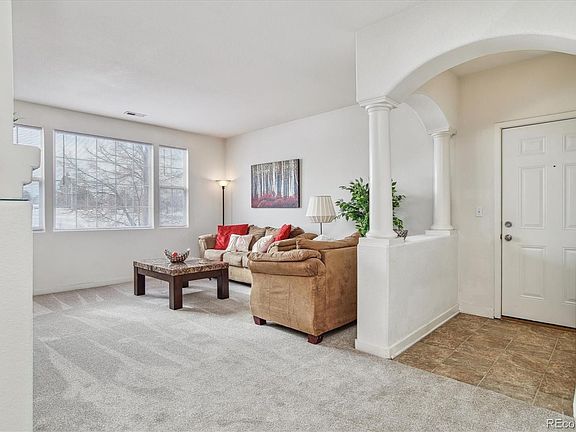Wonderful opportunity to own a modern top-floor condo with large windows and lots of light, and this one has a private garage! Upgraded 2bed/2bath condo featuring new carpet and LVP, plus gorgeous quartz counters, under cabinet lighting, and stainless appliances in the large kitchen. High ceilings and a spacious layout make this unit feel open and airy. Located on the 2nd level (top floor) so there's no one walking above you! Enjoy two updated full bathrooms, great for multiple occupants getting ready at the same time. The generously sized primary bedroom will impress and comes with a walk-in closet and private bath with soaking tub. Enjoy your morning coffee or evening beverage on your private deck with storage closet. Must see oversize garage space, over 14ft wide for storage on both sides, and almost 21ft deep. Front load washer and dryer included plus a Buyer Home Warranty at closing. You'll love walking the neighborhood trail system or playing at the community playground. Don't forget Water World is just 1 mile away for Summer fun! Great central location for easy commuting around town, close to parks, restaurants, and shopping. RTD stops close by for green transit.
