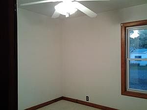 Updated & well maintained home, move in ready! Everything on one floor, a great home to retire in. Fresh paint, new siding, updated flooring & vinyl windows, original oak door, trim and panel doors. Spacious 16x12 living room, 7x13 main floor laundry including washer & dryer. 11x10 master bedroom with 3x10 walk-in closet. 13x14 kitchen includes refrigerator & gas range & table area in front of beautiful bay window. .73 acre lot with plenty of trees & wild life around & a 2.5 car garage with 2 overhead doors & door openers. Per seller lot line runs down middle of drive shared with neighbor. City water is hooked up & paid for.