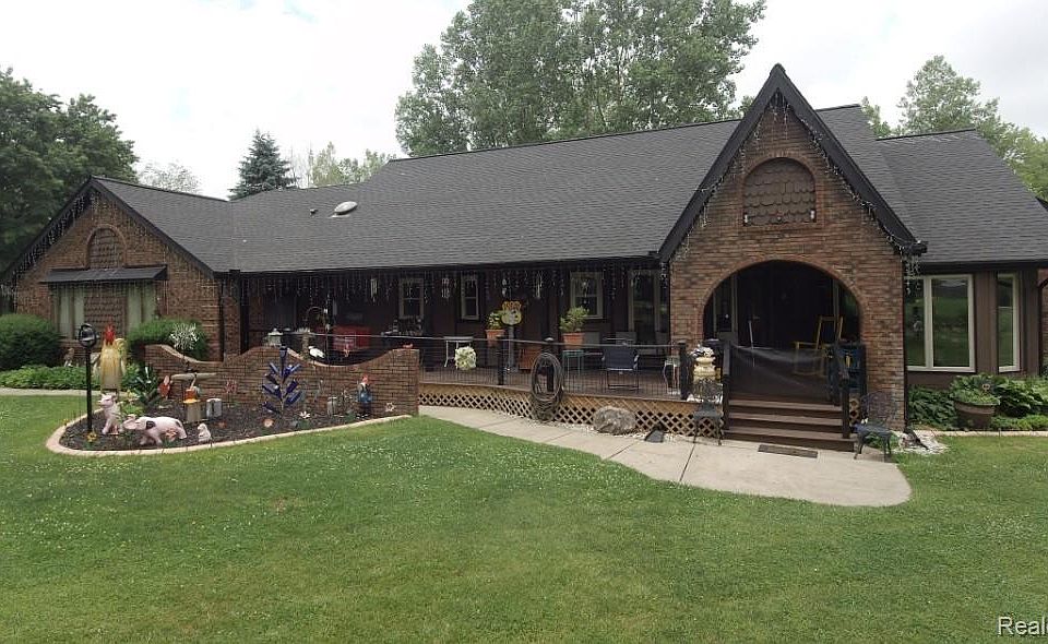 Fabulous three bedroom ranch home in Brighton, township, sitting on 5 acres, with a split down the middle with two deeds. 3 bedrooms, 2.1 bath, large open kitchen with two dining areas. Laundry room office, Fireplace in the great room with hardwood floors. Large master bedroom and bath with a walk in shower and large closet. Attached 2 car garage with garage door openers, handicap . new 20x50 deck that can be accessed from the sliding door in master bedroom or the great room, and also a handicap ramp. Out back. We have a two level 32x48 heated pole barn with 6 inch concrete floors. Included in the sale is the furnace,180# air compressor,2 #9000 lifts and water heater. Upstairs of pole barn are three finished rooms. One very large room with a split unit HVAC Unit. Bathroom with shower also. This is a full functioning shop where I restore old cars. Improvements on the house in the last five years include, the new deck, roof, windows, floors, a concrete driveway from the garage to the road, and a new front porch. This property also has a nice pond that is full of blue gill and koi I've been putting in there. The deer and turkey visit regularly. I am also willing to leave my chicken coop I just built with chickens and ducks, plenty of eggs. This property is on a corner lot with one great neighbor so you got plenty of privacy, but right off the main road. THIS HOME HAS MUCH TO OFFER!