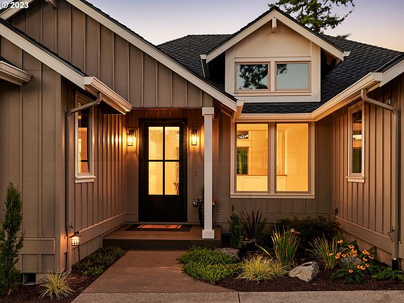 OPEN HOUSE SAT 10/7 1-4 PM & SUN 10/8 12-3 PM! Washington Co Taxes! Rare new Construction in Portland Heights! This beautiful transitional home is a popular Alan Mascord plan. The design & finishes were collaborated with Nordby Design and Architecture. 3 bedrooms plus den (or 4 beds), and 4 full baths. The primary Bedroom is on the main floor. The inviting vaulted great room opens to covered deck w/gorgeous territorial & sunset views to the northwest. Attention to detail in all finishes abound. Custom cabinets, built-in features & custom millwork. Kitchen features quartz counters, tile backsplash, stainless appliances, double ovens, gas cooking & pantry, and beautiful island constructed with rift white oak. The lower level features a family room which opens to a covered patio (deck above is waterproofed), 2 bedrooms (one is en-suite),2 baths along w/spacious mechanical/storage/laundry room. Other features include central vac, AC, Presidential roof, vinyl windows & sliding doors, retractable screen, & Christmas light plug, & EV outlet in garage. The backyard is fully fenced and professionally landscaped w/sprinkler system, lighting, a water feature, & beautiful trees, shrubs, & plantings. Location is ideal for a quick 10 min drive to downtown, or down Cornell to shopping, eateries, Lifestyle & Sunset Atheltic Club gyms, Nike, & easy access to Hwy 26 to the Hi-tech Corridor. Walking distance to Mill Pond Park & French American School. PLEASE NOTE: The utility pole on Marshall will be removed week of 10/6! (once the pole is removed, general clean up & low maintenance landscaping installed back strip along NW Marshall St). Come and see this gem for yourselves! Listing Agent is related to seller.