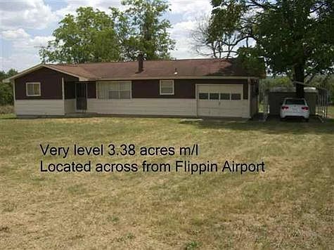 Right in your budget is where you will find this 3 BR 1½ BA 1373 sq. ft. home sitting on a level 3.38 acres m/l. Located directly across from the Flippin airport. Home has seen just one owner. Has city water, walk-in closet in master bedroom. 10 X 11'6 outbuilding and a 12' X 20 carport. Brokered And Advertised By: GILBERT REALTY CO Listing Agent: MIKE HAYNES