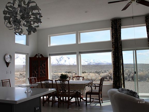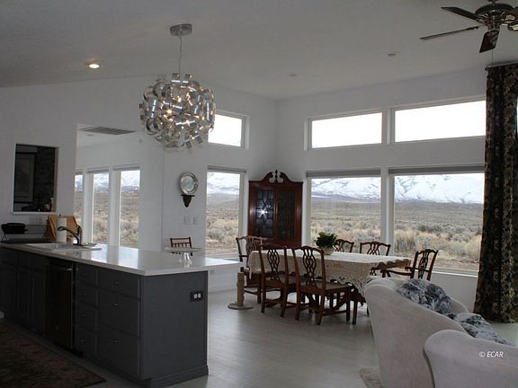 Private, end of the road location with expansive, gorgeous views of the Ruby Mountains and ranch lands. Large windows invite tons of natural light within the home, you feel even more connected w/ the outside. Seller has done an amazing job to this one of a kind home. Open and spacious Livingroom/Diningroom/Kitchen. Everything in the home is new and updated. Home has large room off of diningroom that can easily be converted to 3rd bedroom. Views throughout the home through all the windows are spectacular. Seller will be reviewing all offers on Tuesday at 1:00 pm