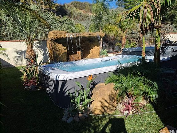 AMAZING and BEAUTIFUL!!! Tastefully Remodeled end of cul-de-sac and gated Wood Ranch home. Over $100,000 in upgrades have been invested, into making this house a Mediterranean Masterpiece. The exterior of the home has been recently painted in warm colors to match the stacked stone driveway. As you enter the home you will walk thru a newly gated front entry ,that leads into a beautiful foyer surrounded by a beautiful pergola, water fountain and lush Greenery. Once inside the home, you will see an extravagant and beautiful chandelier that is the focal point of the room, accented by high vaulted ceilings. The kitchen has beautiful marble countertops and beautiful stone that looks like it was taken from a page of a Mediterranean kitchen. You will find Hardwood and Travertine floors throughout the upstairs and downstairs. A new wrought iron staircase has been installed to match the Mediterranean theme of the home . In the back yard you will find a beautiful oasis, with a newly built above ground swim spa perfect for 10 people . A private Grotto was built alongside of the swim spa, to bring true beauty to the yard. A built in BBQ and extensive lush grown Palm Trees finish off this look. In the garage you will also find a built in mini cottage that can be used as another room or can be taken down to restore as an original garage. Upstairs you will find a grand room that was previously used as 2 rooms. In addition the home has been upgraded with a 200 amp electrical panel .